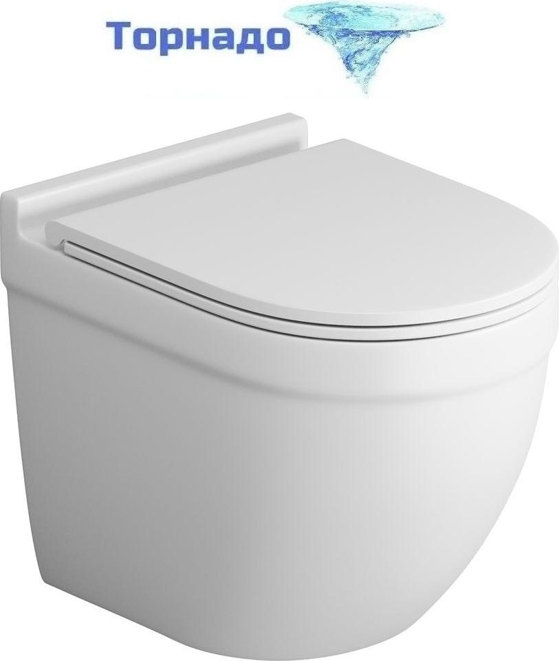 Унитаз подвесной безободковый Grossman GR-4483MSQ с крышкой микролифт, белый матовый (Система смыва торнадо)