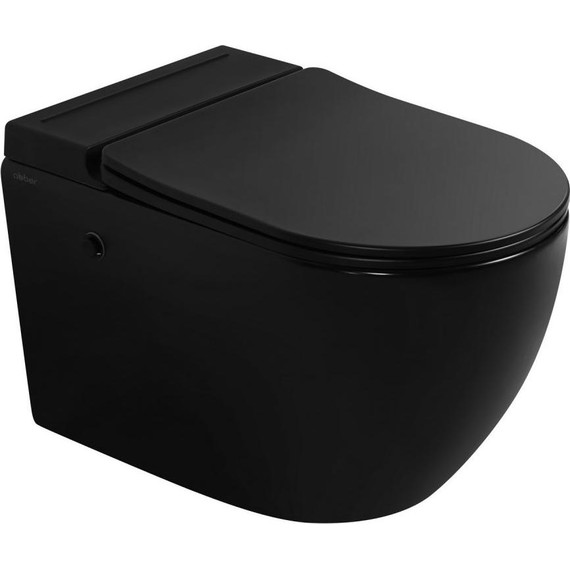 Унитаз подвесной безободковый с импульсным смывом Abber Bequem AC1108PMB с крышкой микролифт, чёрный