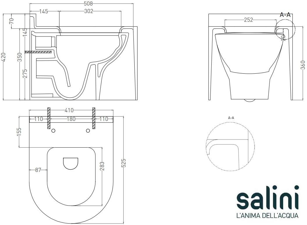 Описание унитаз безободковый,унитаз подвесной Salini 240121KM
