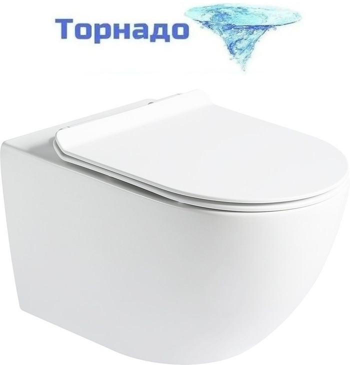 Унитаз подвесной безободковый SantiLine SL-5002T с тонкой крышкой микролифт (система смыва Торнадо)
