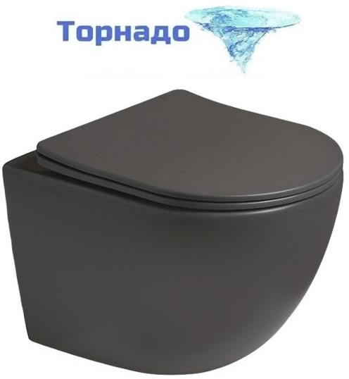 Унитаз подвесной безободковый SantiLine SL-5005T-DG с тонкой крышкой микролифт (система смыва Торнадо) тёмно-серый матовый