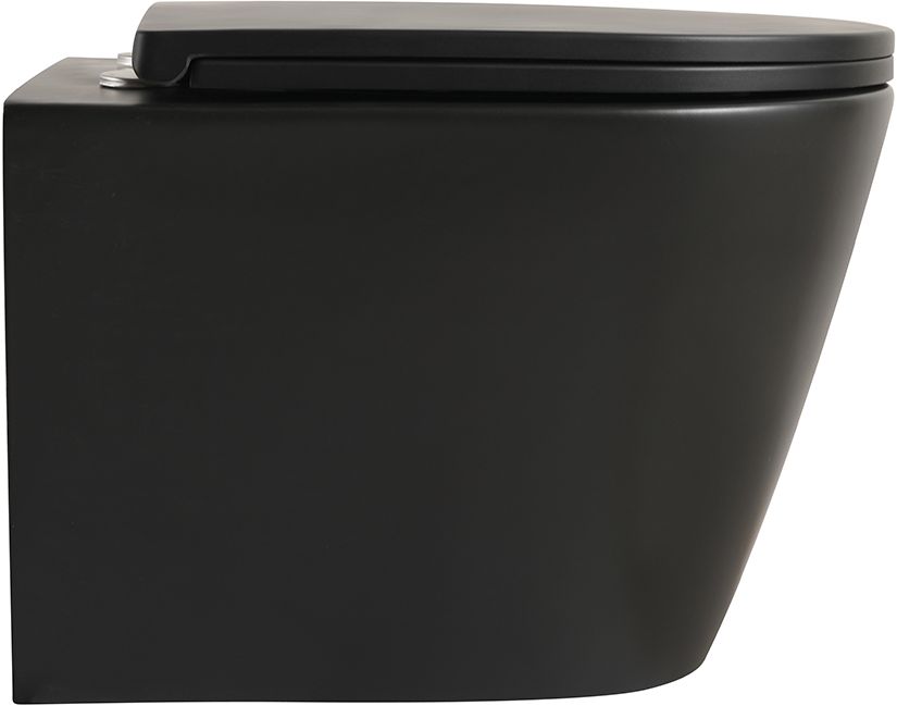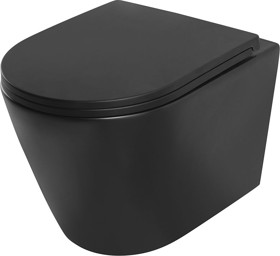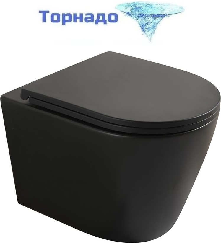 Унитаз подвесной безободковый Veconi Ando VAN-48TB (Система смыва торнадо) с тонкой крышкой микролифт, чёрный матовый