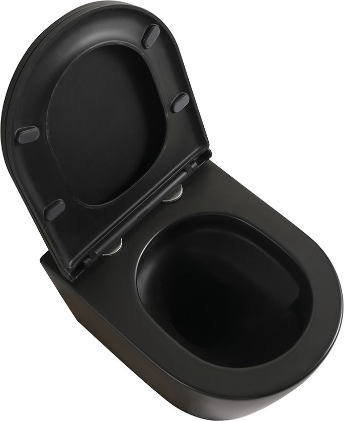 Унитаз подвесной безободковый Veconi Ando VAN-48TB, сиденье с тонкой крышкой микролифт в комплекте, цвет чёрный матовый.