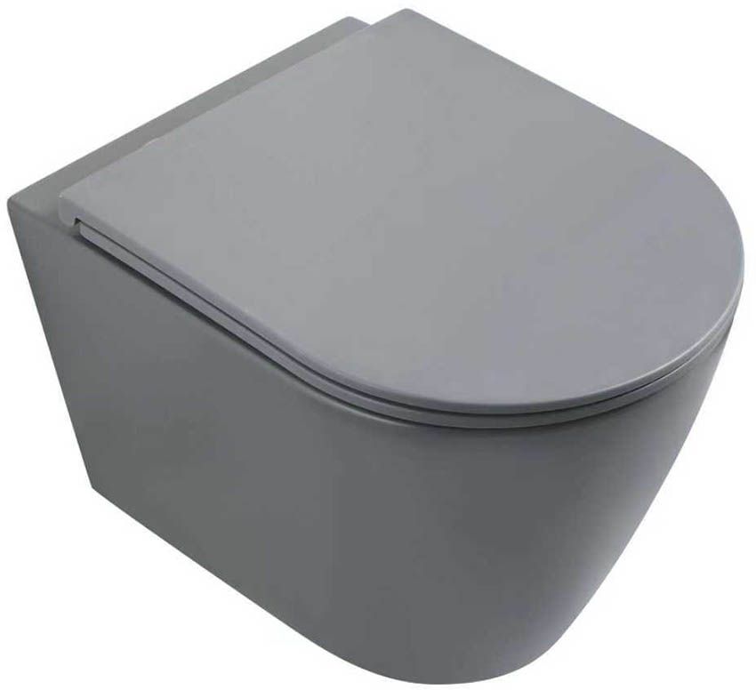 Унитаз подвесной безободковый Veconi Ando VAN-48TGR (Система смыва торнадо) с тонкой крышкой микролифт, серый матовый