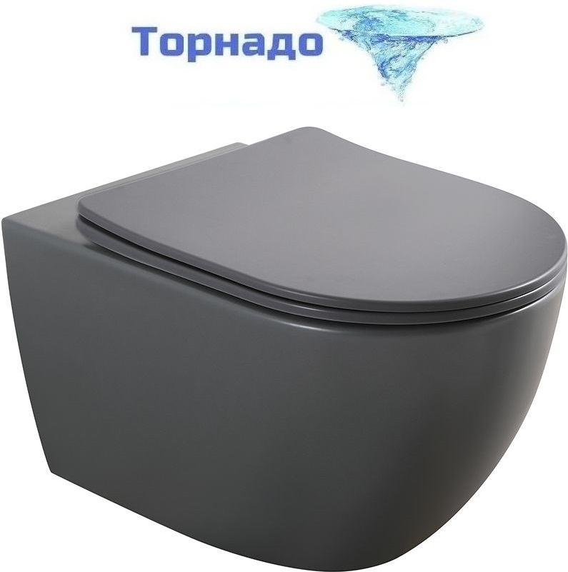 Унитаз подвесной безободковый Veconi Ento VEN-52TGR (Система смыва торнадо) с тонкой крышкой микролифт, серый матовый