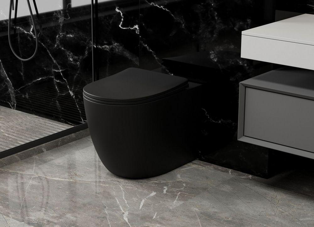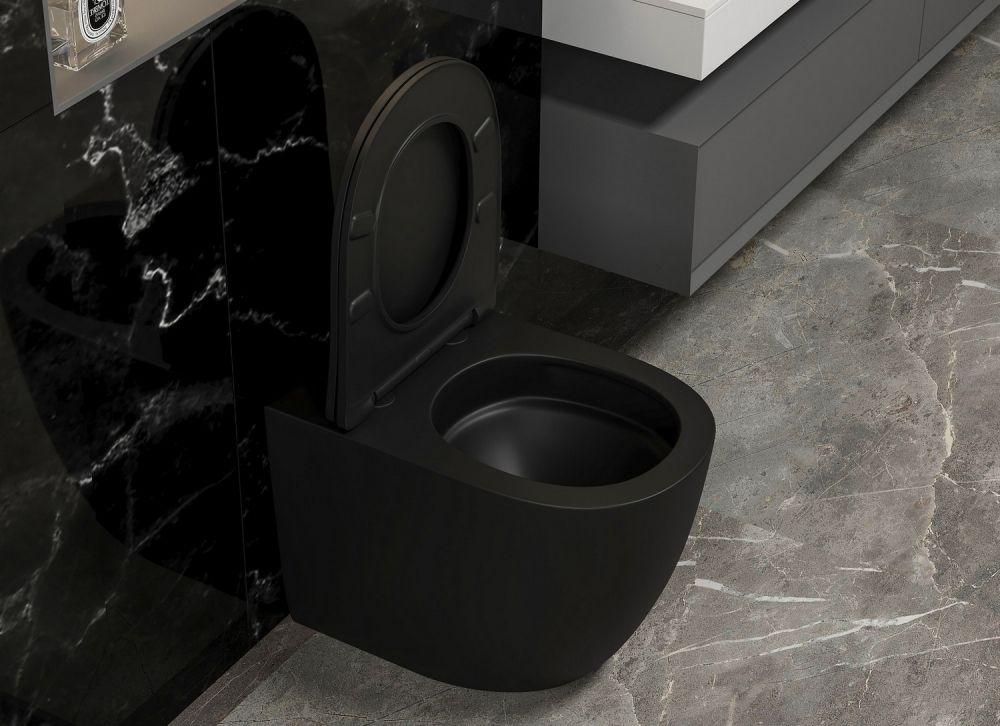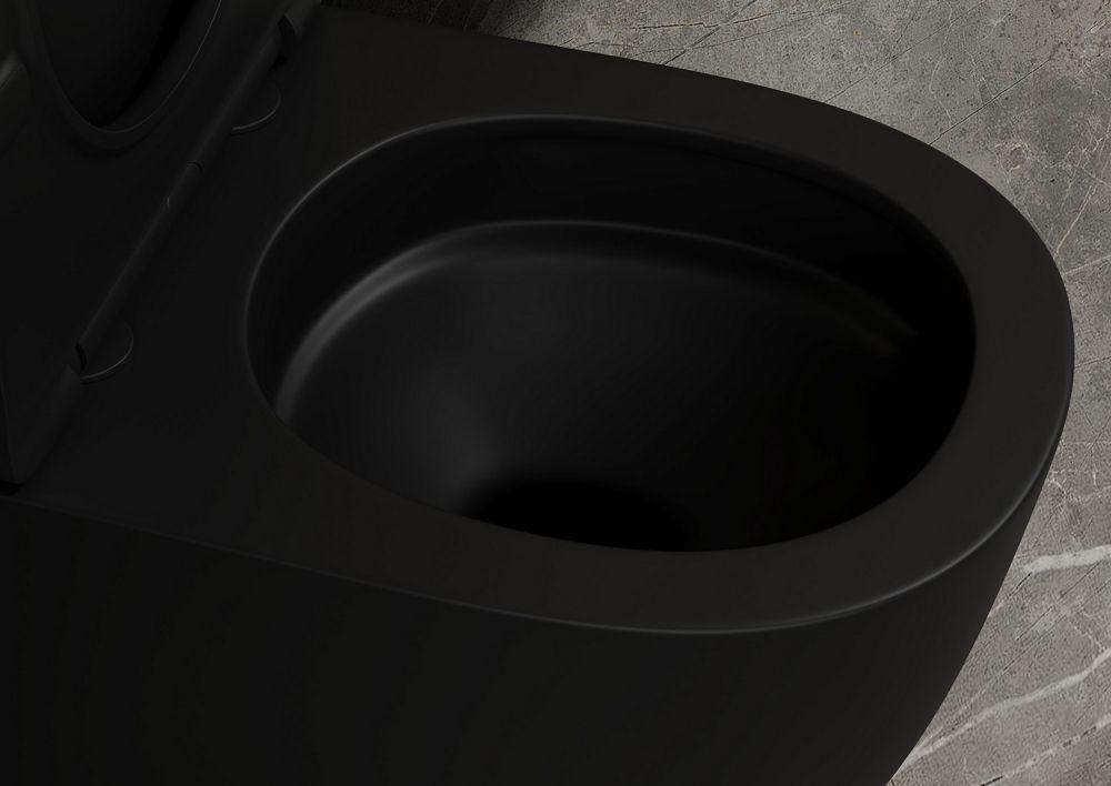 Унитаз приставной безободковый Abber Bequem AC1111TMB (выпуск горизонтальный), сиденье с крышкой микролифт, цвет чёрный.