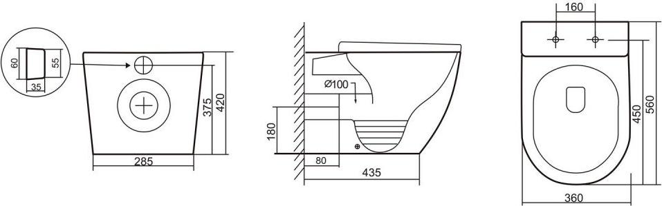 Характеристики унитаз безободковый,унитаз приставной Abber (AC1111TMB)
