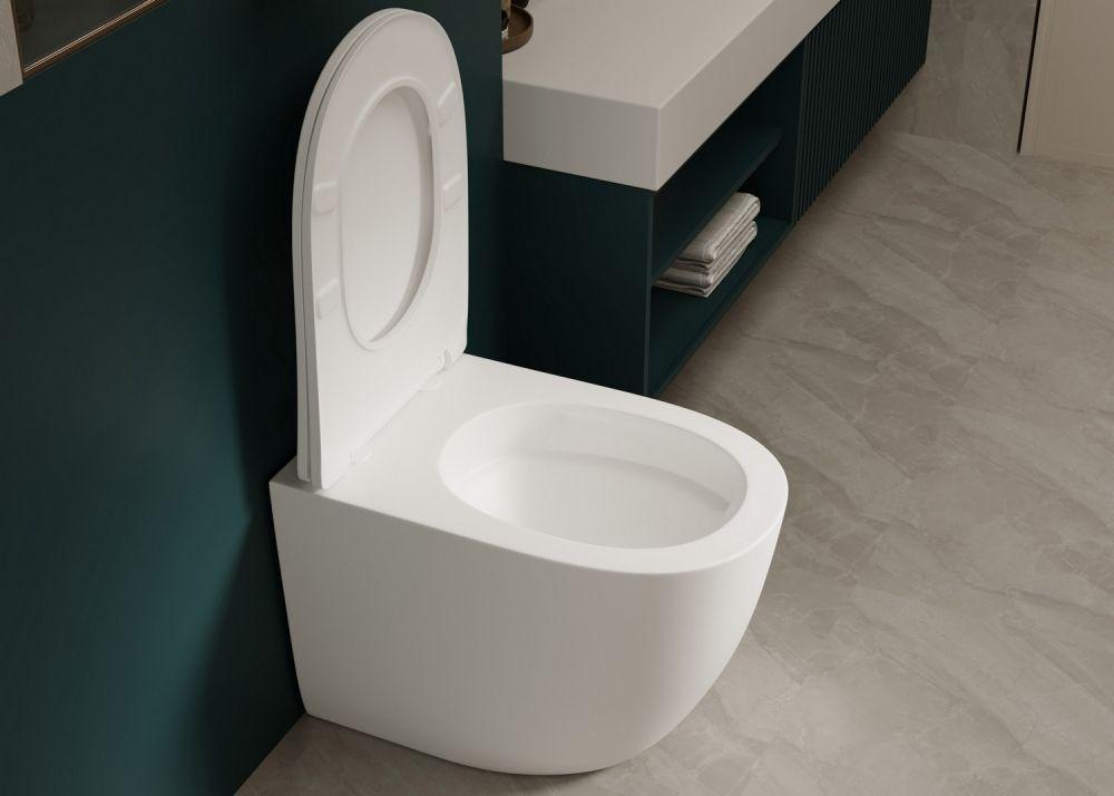 Унитаз приставной безободковый Abber Bequem AC1111TMW (выпуск горизонтальный), сиденье с крышкой микролифт, цвет белый матовый.