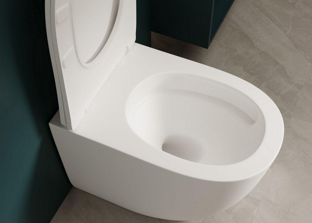 Унитаз приставной безободковый Abber Bequem AC1111TMW с крышкой микролифт, белый матовый (выпуск горизонтальный)