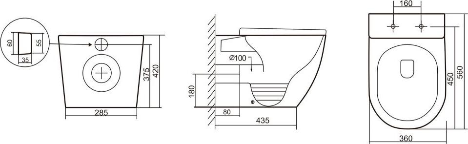 Характеристики унитаз безободковый,унитаз приставной Abber (AC1111TMW)