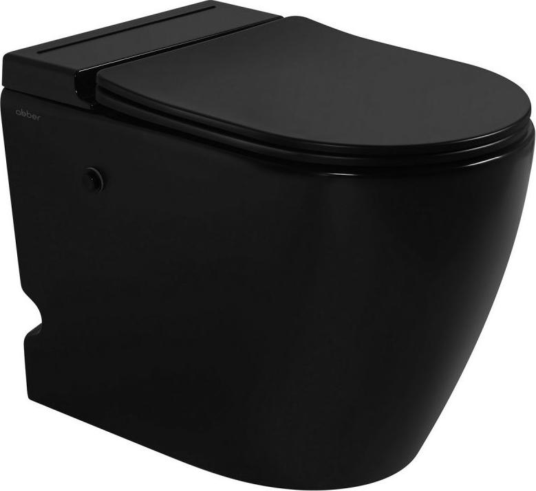 Унитаз приставной безободковый импульсный Abber Bequem AC1115PMB с крышкой микролифт, чёрный матовый (выпуск горизонтальный)