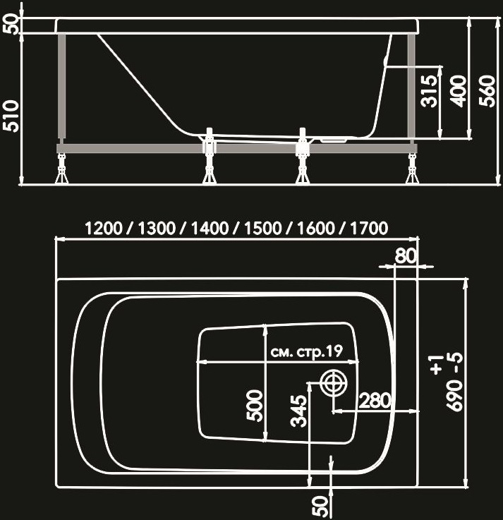 Ванна акриловая 1ACReal Gamma 140х69 см BBA-GA147X0-00U на ножках, панель и сифон приобретаются отдельно.