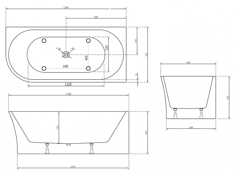 Ванна акриловая Abber AB9257-1.7 R 170x78 см