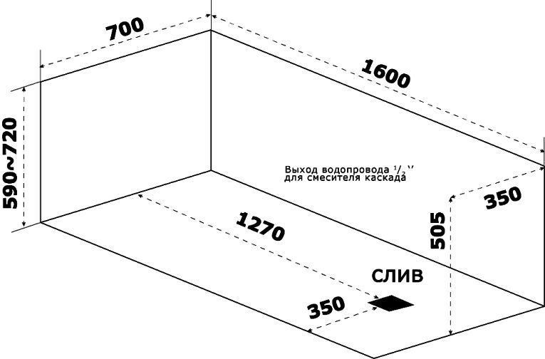 Ванна акриловая Bas Аякс с каркасом, размер 1600х700 мм. Цвет белый.