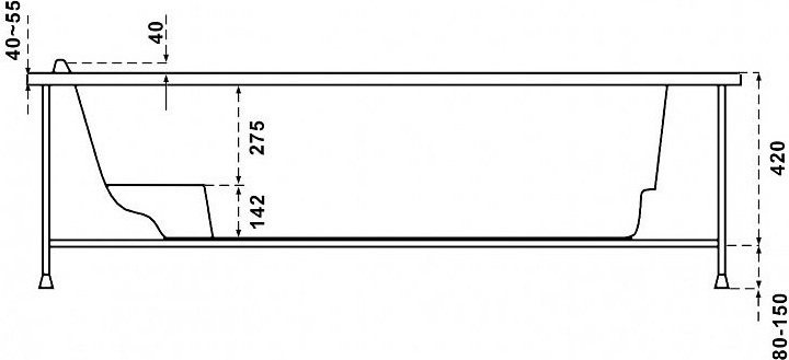 Ванна акриловая Bas Мартиника с каркасом, размер 1600х850 мм. Цвет белый.