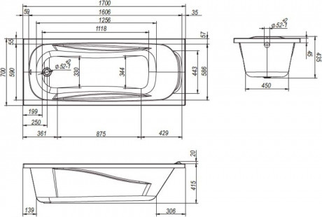 Ванна акриловая Arctica 160x70 см с каркасом и передней панелью, боковая панель приобретается отдельно.