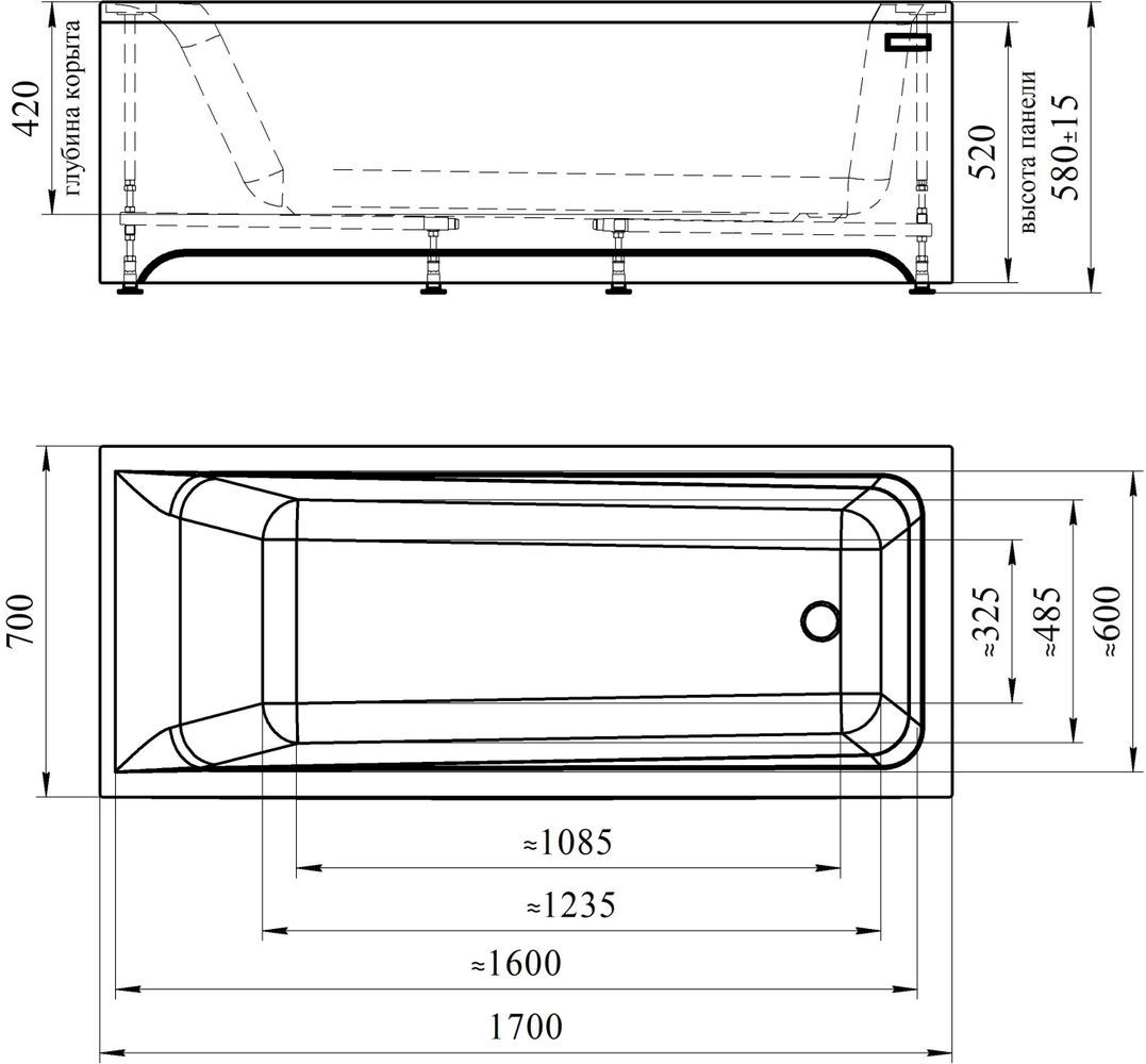 Ванна акриловая STARK, размер 170x70 см, цвет белый. Сифон, панель и каркас приобретаются отдельно.