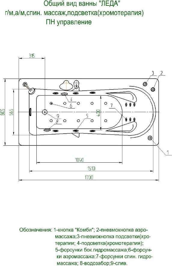- усиленный гидромассаж (двигатель 1,5 кВт)