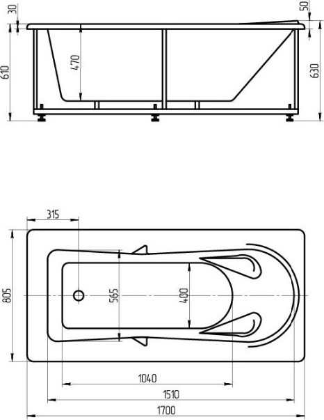 - Внутр. размер ванны 151 см