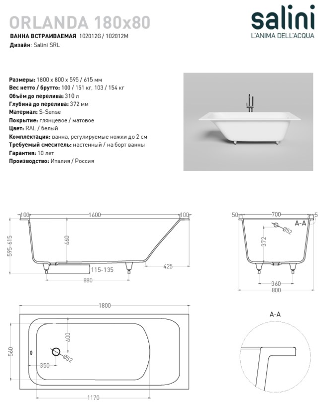 ORLANDA - это серия встраиваемых ванн компании Salini. Эстетичная прямоугольная чаша с закруглёнными углами для истинных консерваторов.