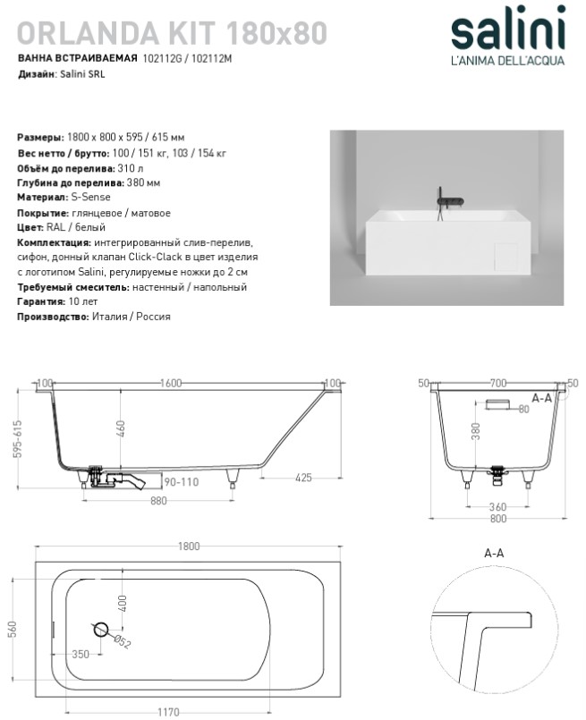 ORLANDA - это серия встраиваемых ванн компании Salini. Эстетичная прямоугольная чаша с закруглёнными углами для истинных консерваторов.Базовая модель ORLANDA - это встраиваемая ванна с двумя отверстиями: для слива и для перелива. Это классическая ванна из литого камня по привлекательной цене -для приверженцев простоты и комфорта.