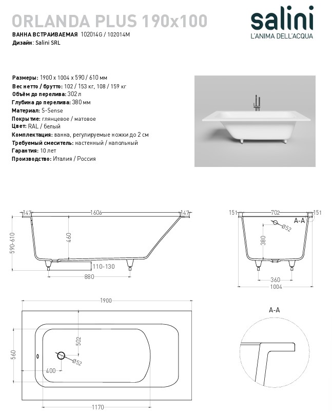 Описание ванна Salini 102014M