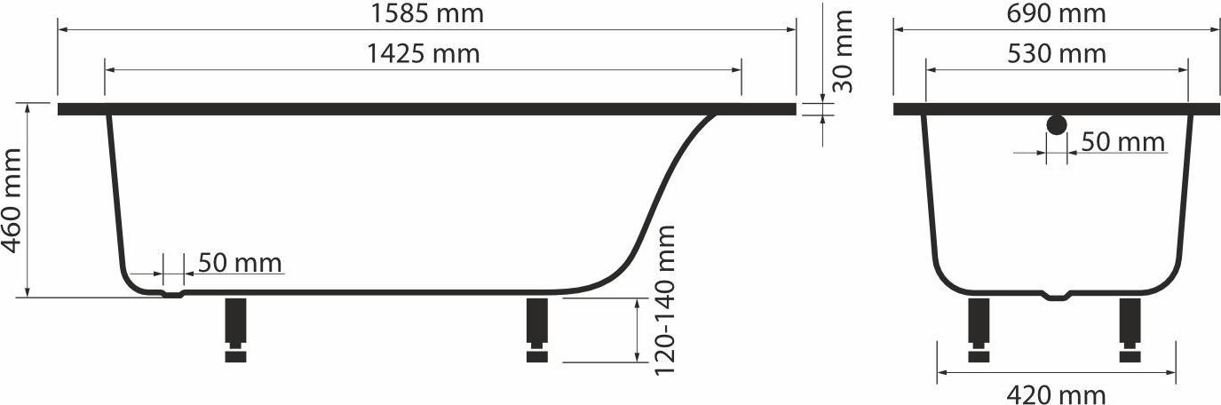 Ванна каменная Sole Mediana ТМ с ножками, размер 160x70 см, цвет белый.