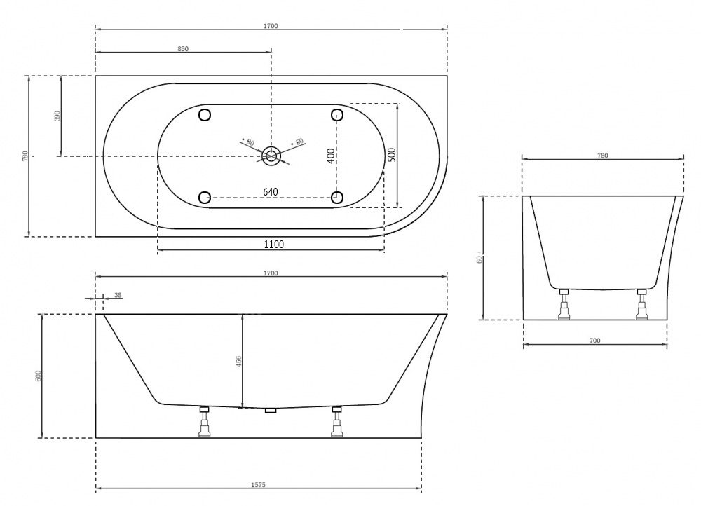 Ванна отдельностоящая Abber AB9257-1.7 L 170x78 см