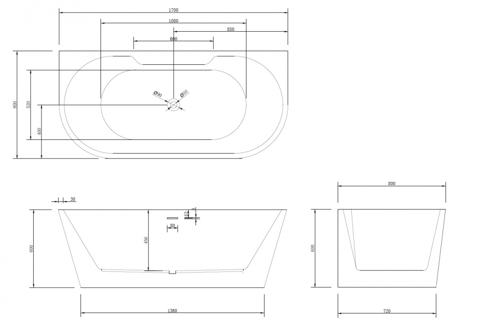 Ванна отдельностоящая Abber AB9296-1.7 170x80 см