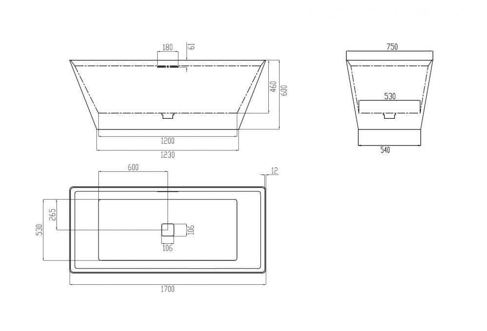 Ванна отдельностоящая Abber Berlin 170x75 см AM9912