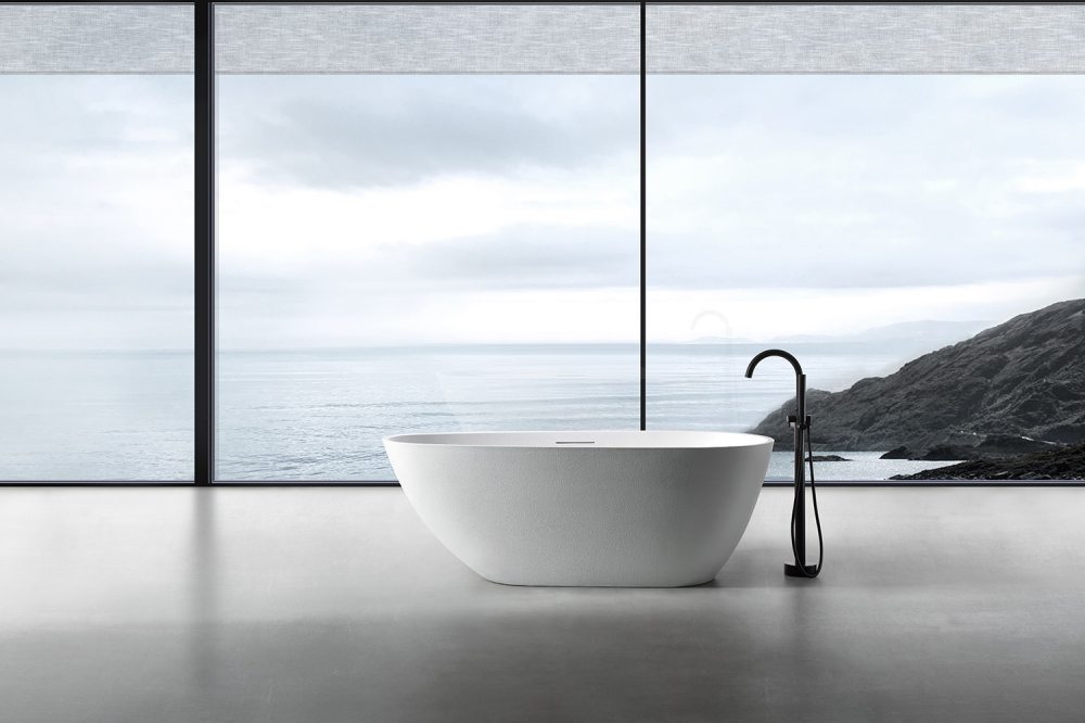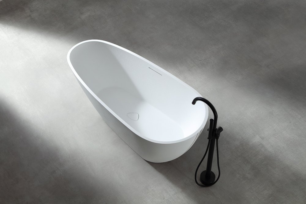 Ванна отдельностоящая Abber Dortmund 170x75 см AM9911 из искусственного камня, слив-перелив в комплекте, цвет - белый.
