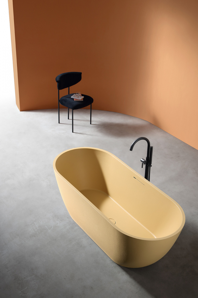 Ванна отдельностоящая Abber Frankfurt 170x75 см AM9941MS из искусственного камня, слив-перелив в комплекте, цвет - песочный матовый.