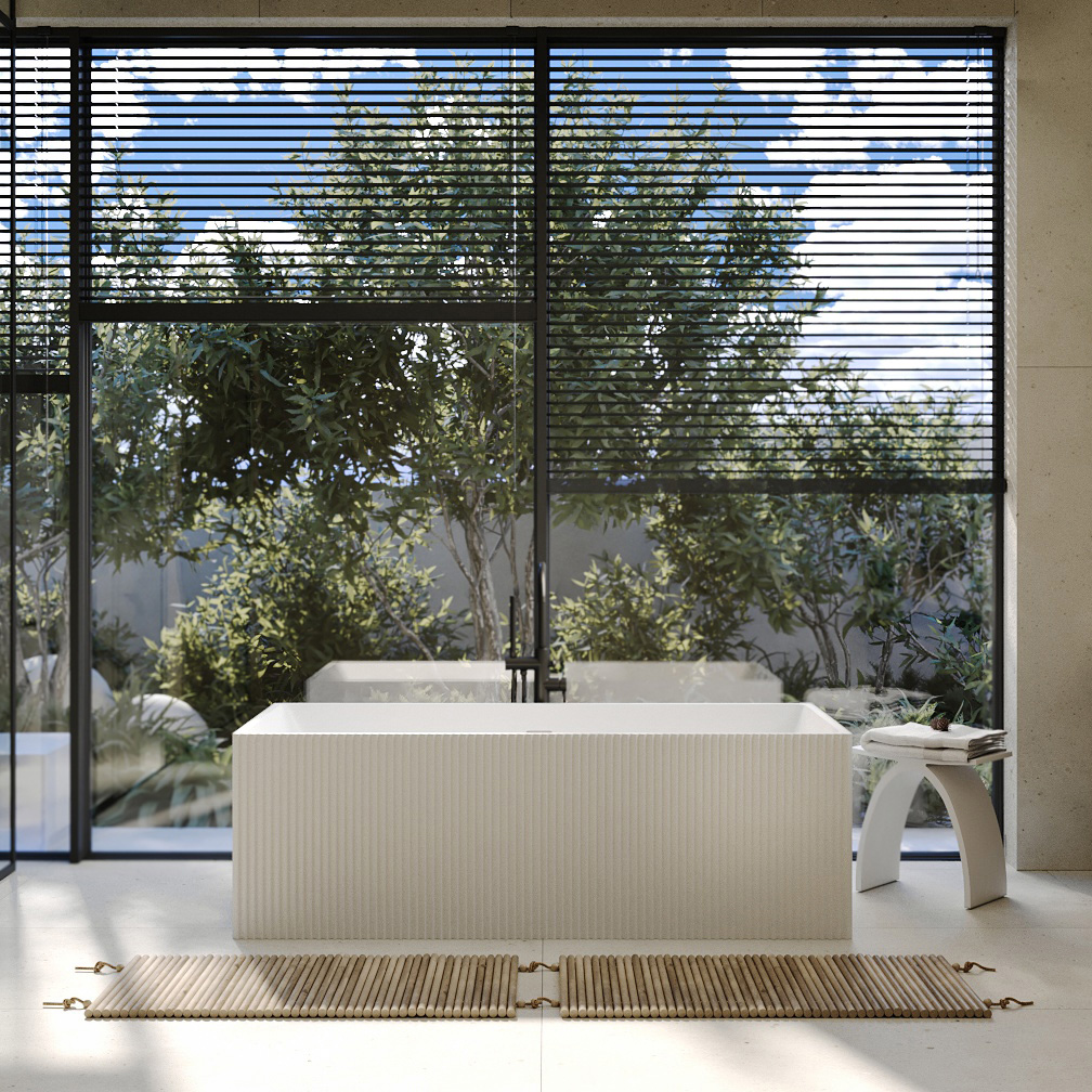 Ванна отдельностоящая Abber Stein 170x75 см AS9602 из искусственного камня, слив-перелив в комплекте, подсветка приобретается отдельно, цвет - белый.