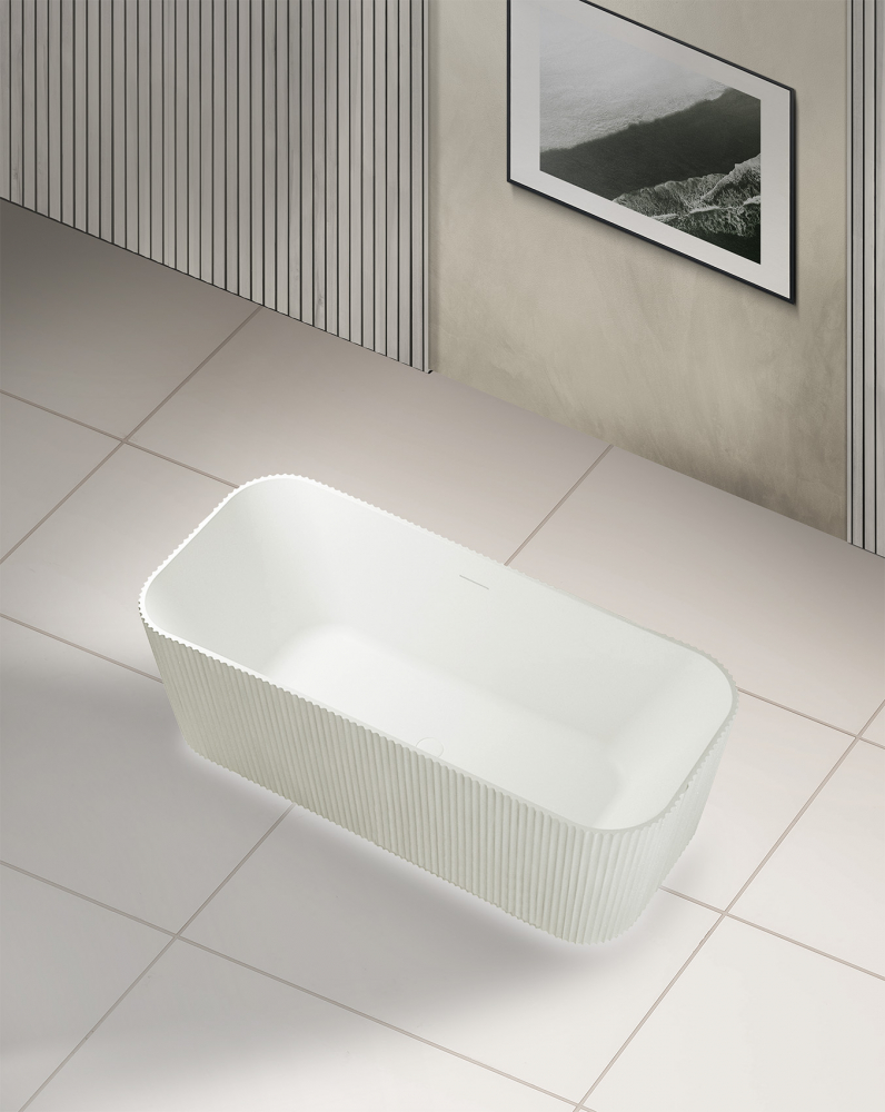 Ванна отдельностоящая Abber Stein 170x75 см AS9663 из искусственного камня, слив-перелив в комплекте, подсветка приобретается отдельно, цвет - белый.