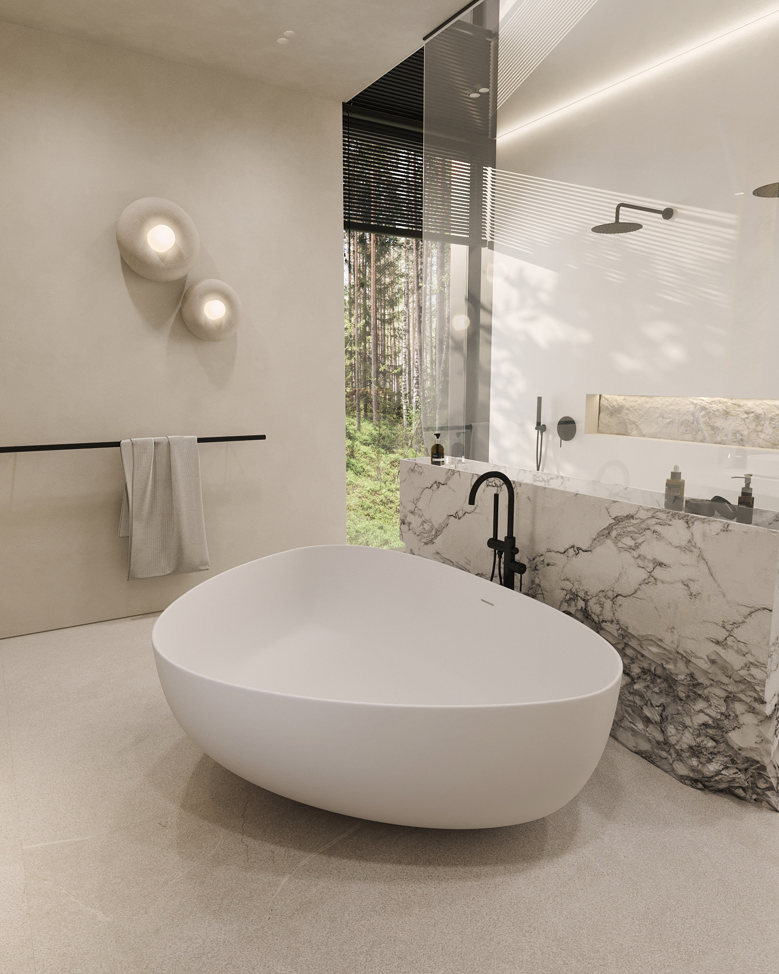 Ванна отдельностоящая Abber Stein 180x130 см AS9608 из искусственного камня, слив-перелив в комплекте, цвет - белый матовый.
