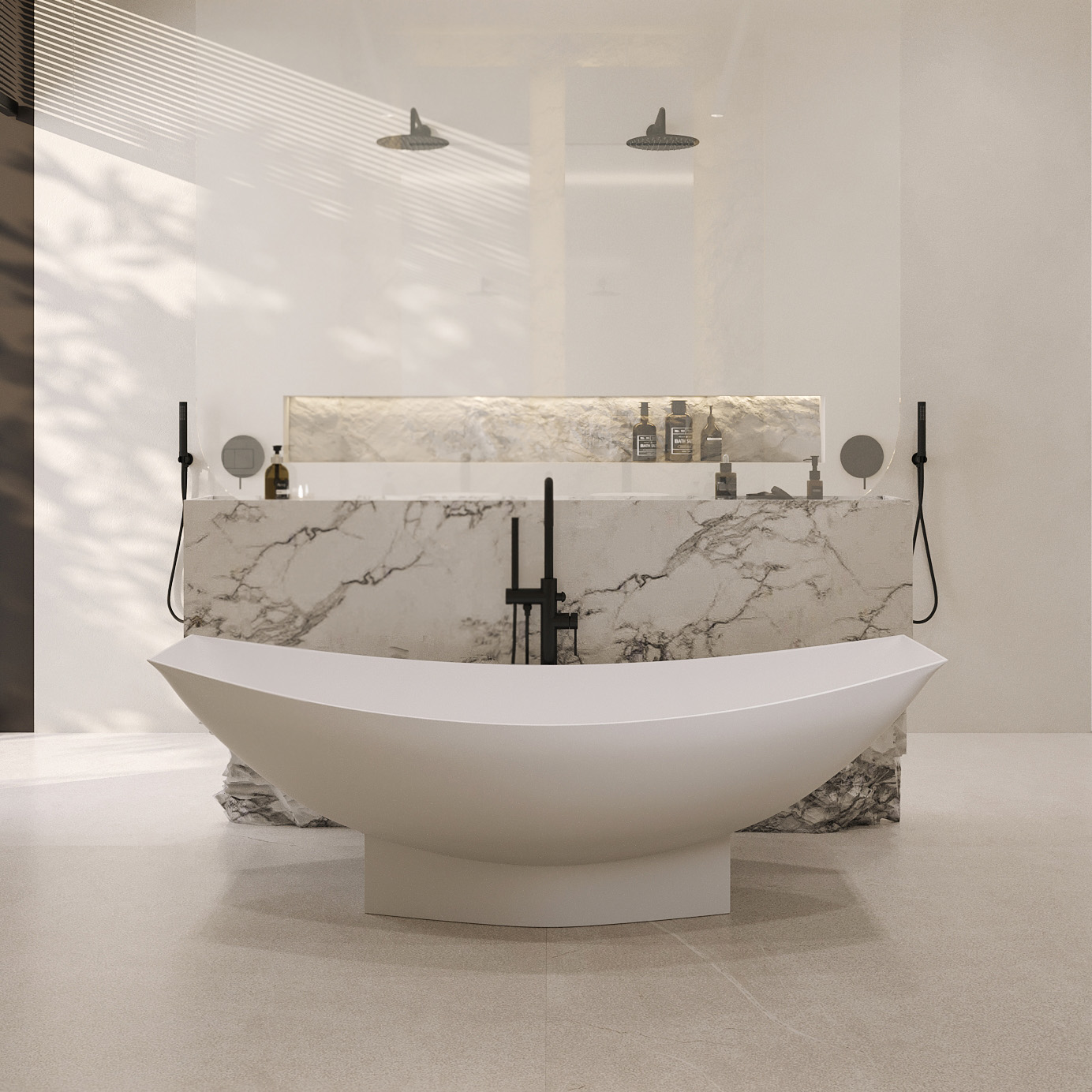 Ванна отдельностоящая Abber Stein 180x80 см AS9610 из искусственного камня, слив-перелив в комплекте, цвет - белый матовый.