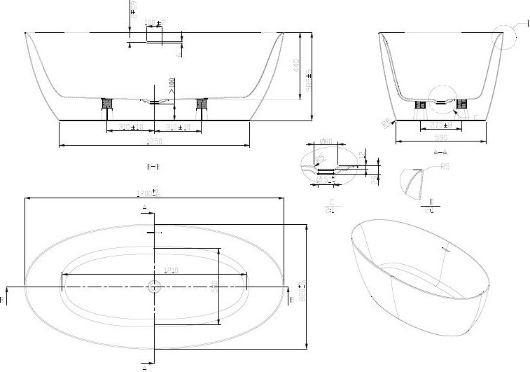Характеристики ванна Art&Max (AM-BOL-1700-820)