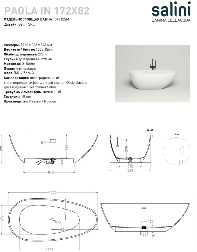 Описание ванна Salini 101612SM