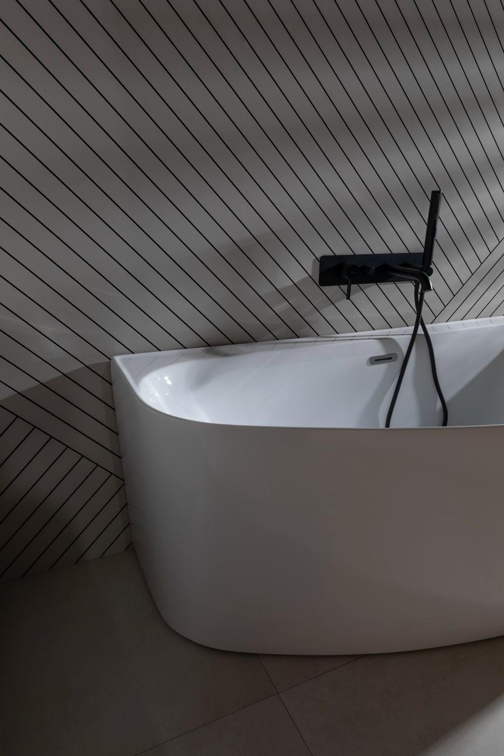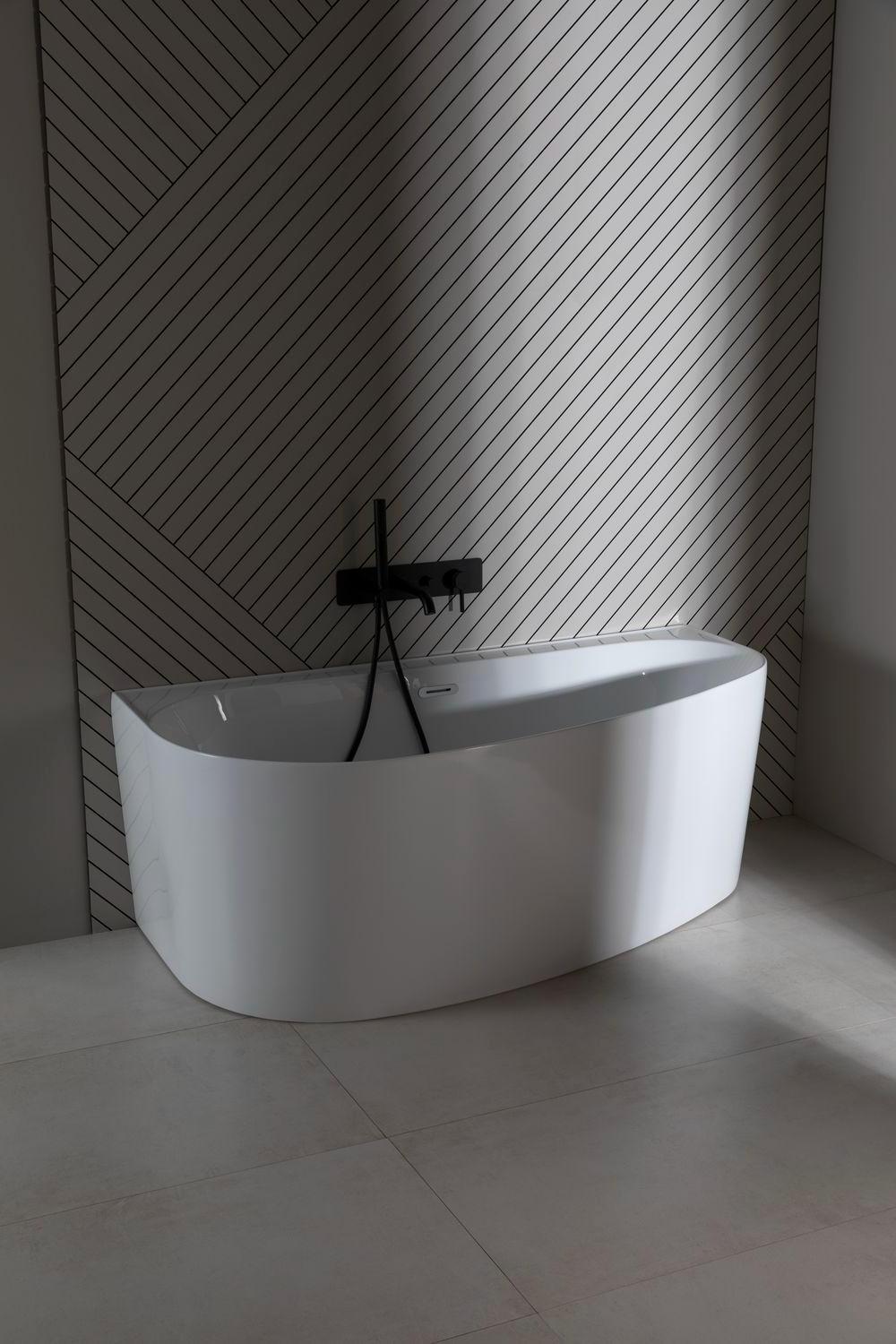 • Асимметрия создает главную изюминку конструкции, приятно выделяя ванну в интерьере. Что касается интерьерных особенностей, то данная модель хорошо смотрится в сочетании со стилем модерн, лофт, эклектика и в других популярных направлениях дизайна.