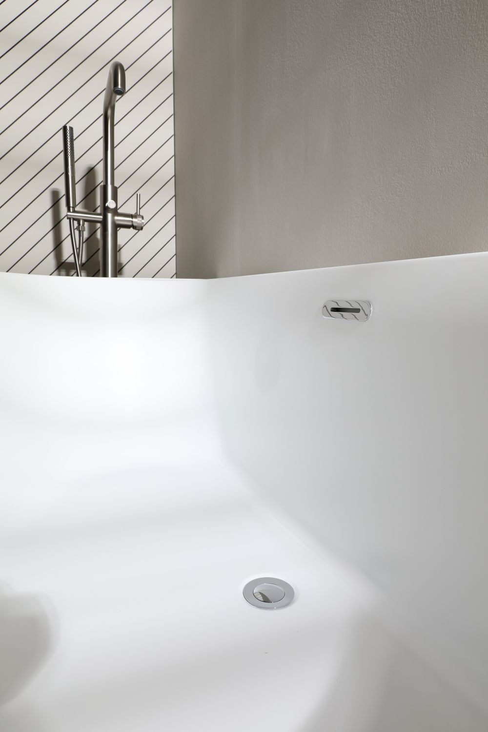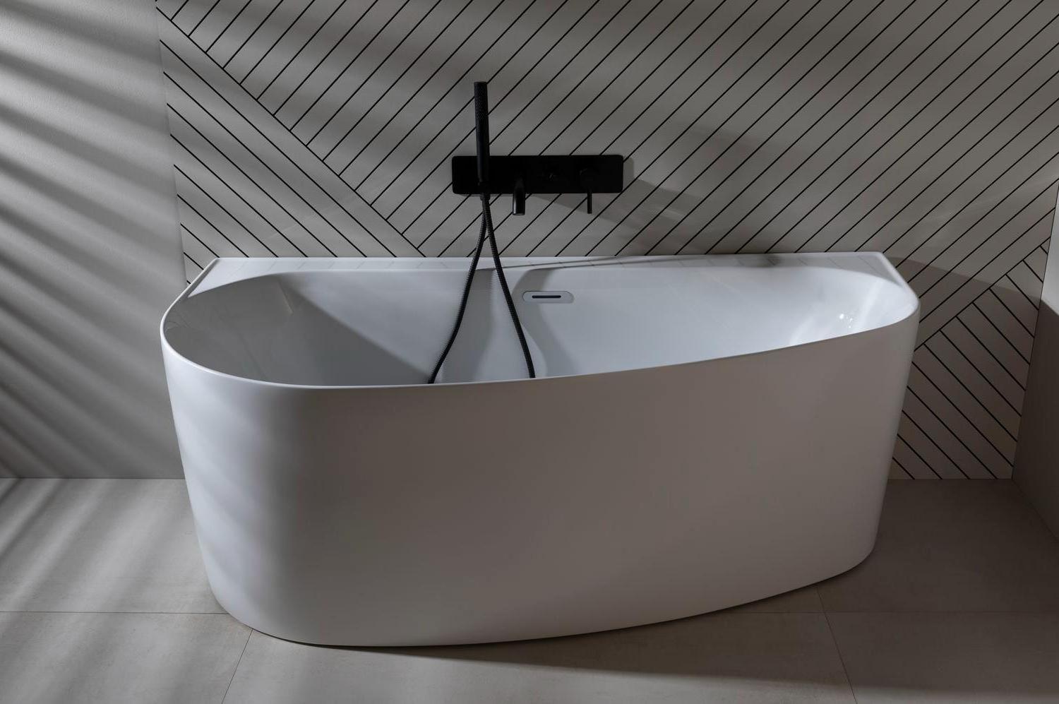 • Смеситель для таких моделей можно установить в стене сбоку или же у основания.