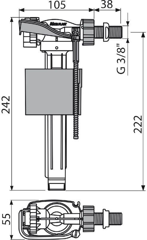 Впускной механизм Alcadrain A150-3/8" с боковой подводкой для керамических бачков.