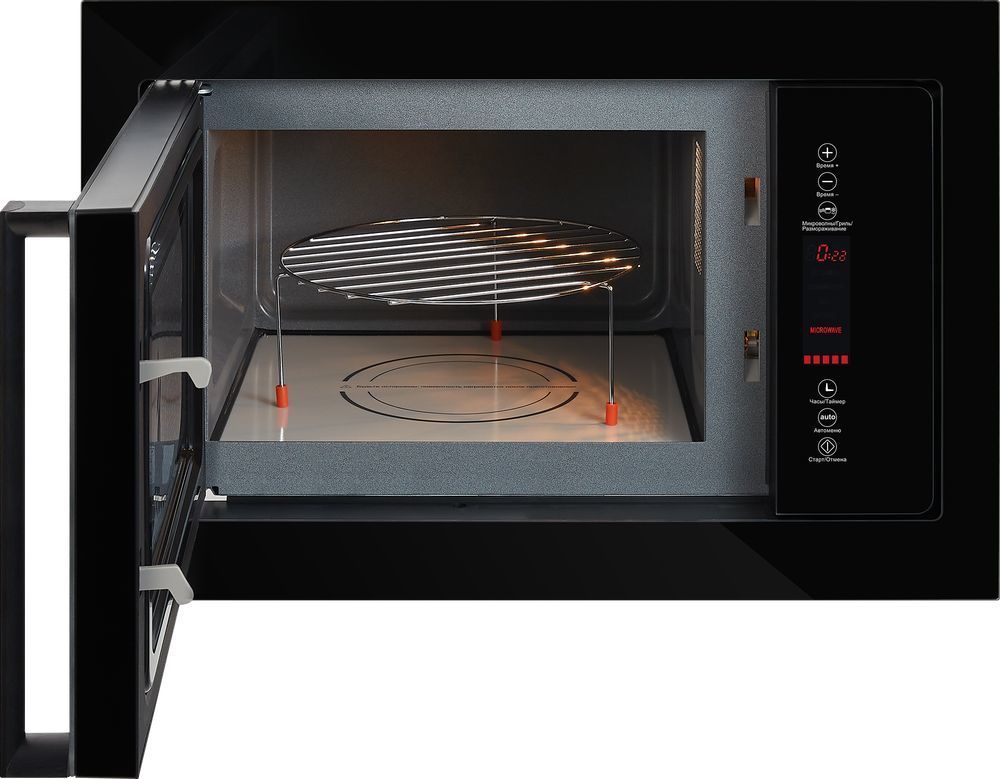 - Встроенный в микроволновую печь кварцевый гриль позволяет быстро и безопасно запечь мясные, рыбные и овощные блюда с золотистой корочкой. Благодаря высокой мощности нагрева 1200 Вт продукты обжариваются быстрее и получаются вкуснее, так как кварцевый ТЭН по своим свойствам наиболее достоверно передает эффект открытого огня.