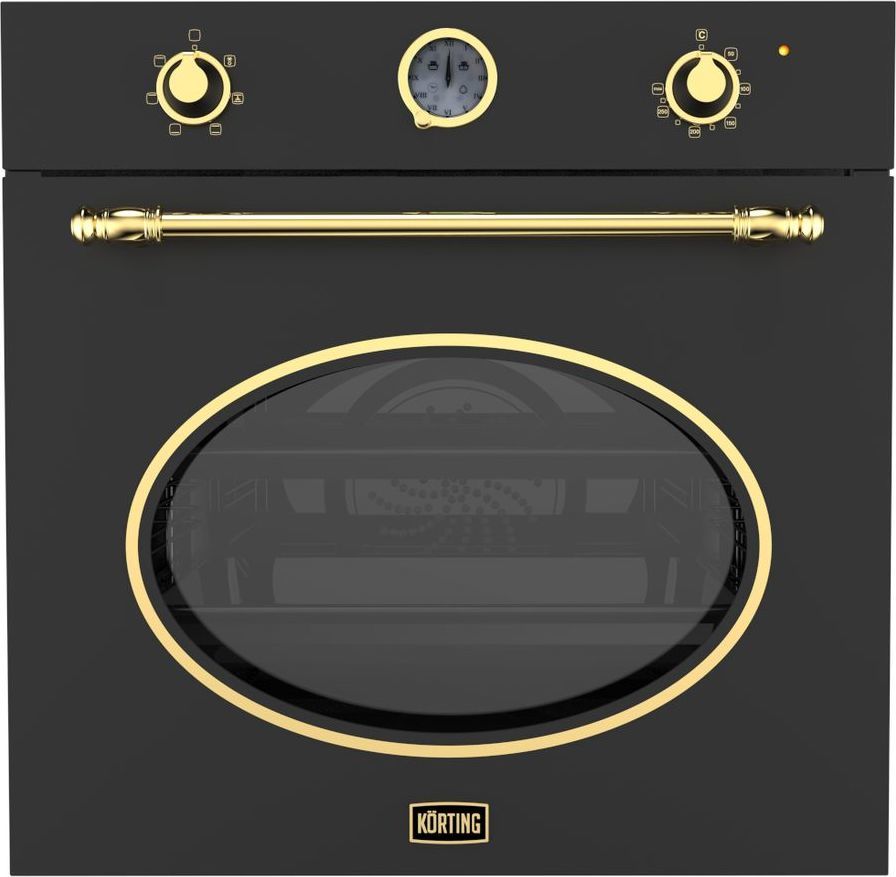 Встраиваемый электрический духовой шкаф Korting OKB 461 CRGN, фурнитура золото, цвет чёрный матовый.