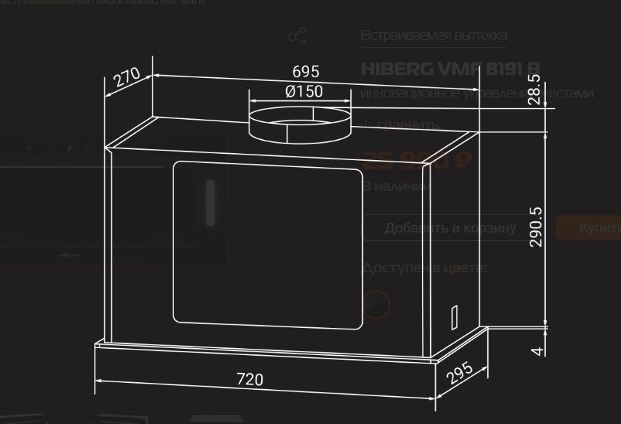 Вытяжка Hiberg VMF 8191 B, цвет чёрный.