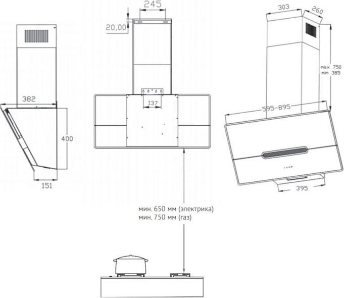 - Ширина 60 см - Следует учитывать и соотносить размеры вытяжки с размерами варочной поверхности. Вытяжка должна быть не меньше, чем сама поверхность. Ширина вытяжки 60 см отлично подходит к варочным поверхностям на 60 см или 45 см.