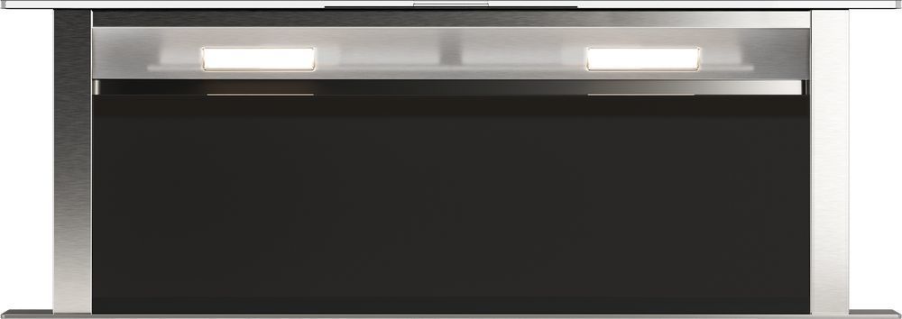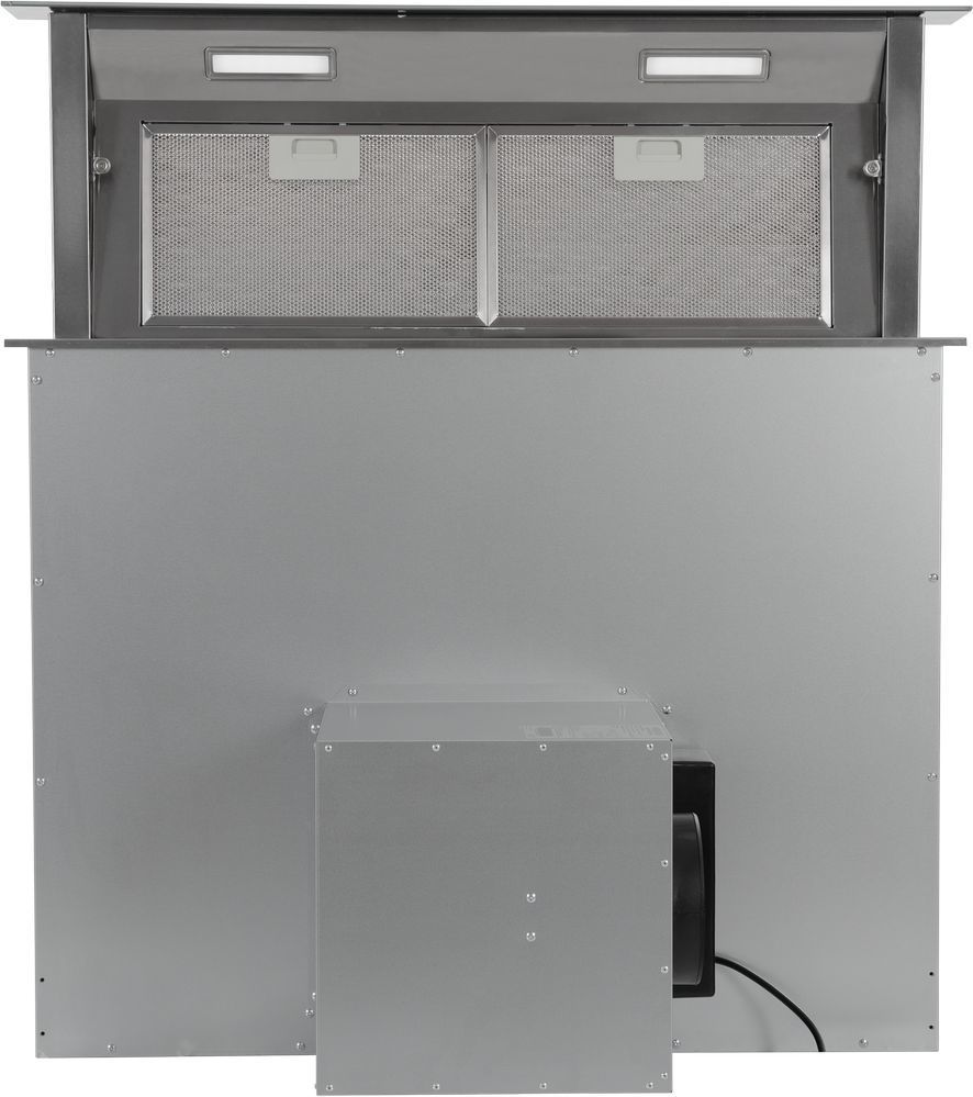 - Благодаря нисходящему потоку воздуха, вытяжка с мощностью двигателя 250 Вт и производительностью 1000 м³/ч позволяет быстро очистить воздух от запахов во время процесса приготовления пищи, а алюминиевый жироулавливающий фильтр предотвращает попадание жира и других загрязнений на детали двигателя.