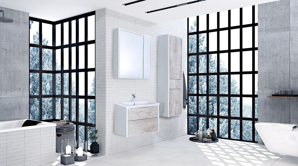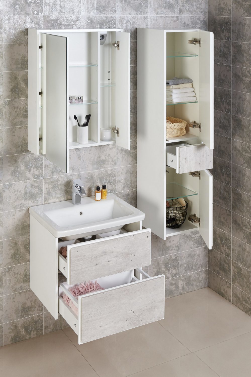 Зеркальный шкаф ROCA Ronda 70 см, цвет бетон/белый глянец.