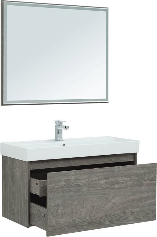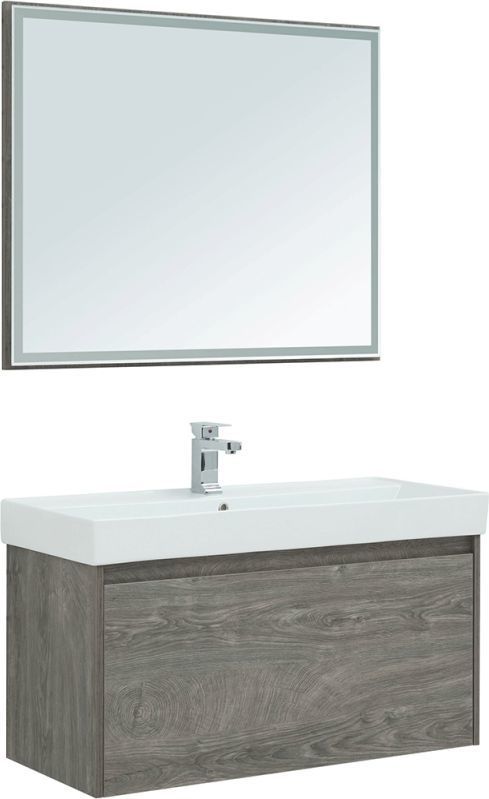 Зеркало Aquanet Nova Lite 100 см, с подсветкой. Цвет дуб рошелье.