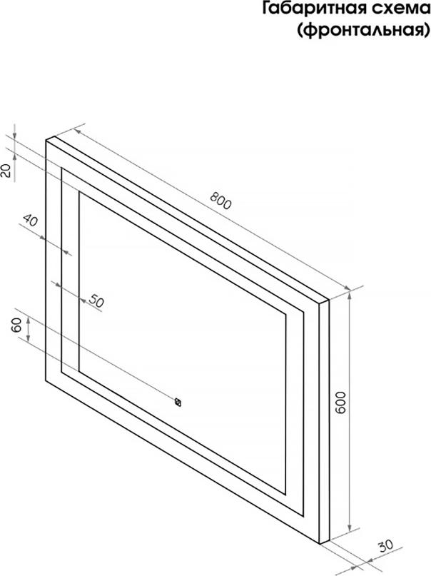 Зеркало для ванной комнаты AN Фанданго с подсветкой, сенсорным выключателем и диммером цветовой температуры, размер 800x600x30 мм.