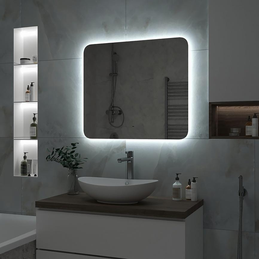 Зеркало для ванной комнаты AN Румба с подсветкой, сенсорным выключателем и диммером цветовой температуры, размер 800x700x30 мм.
